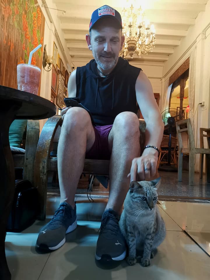 Sitting down, enjoying a bottle of Chang, a local cat came and plonked herself down next to Darrell and spent the evening sat next to us. Felines know who they like and if you are comfortable with cats or not, and she seemed to enjoy being around us. After talking to the owner, it seems she is a stray cat, but is looked after by her. She looks very well-kept I have to say, and it was great just sat there, chilling with a cat rubbing around our legs once more, we really have missed that feline contact since we've been travelling. So Bar, really did feel like a home from home, and we will be back tomorrow for dinner; to end another perfect day in paradise; well almost paradise!