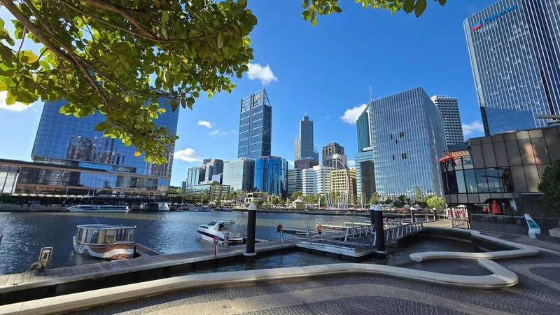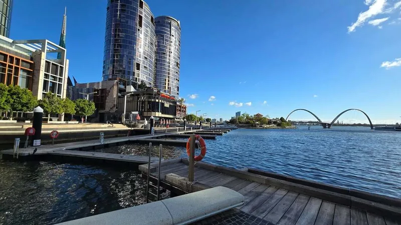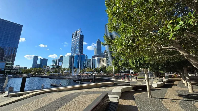 We arrived in the city at just after 2 pm — the sky was cloudy and temperatures were significantly lower than they had been. There was a cool breeze blowing across Elizabeth Quay, and it was a beautiful day, perfect for a walk around the city!