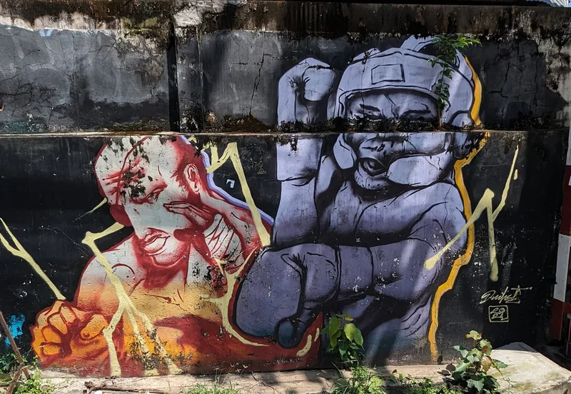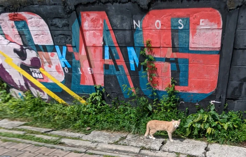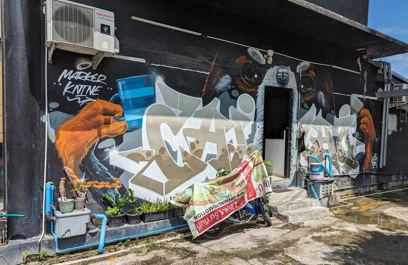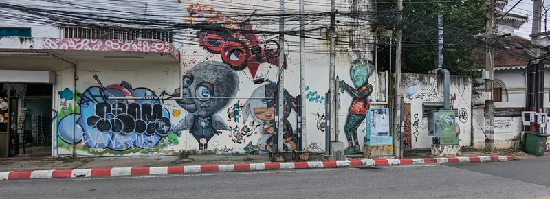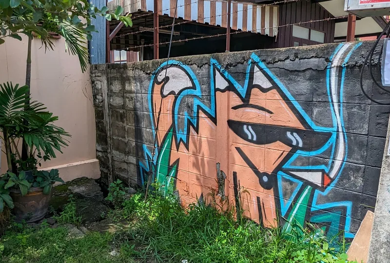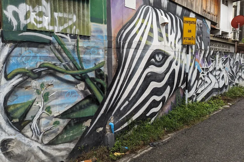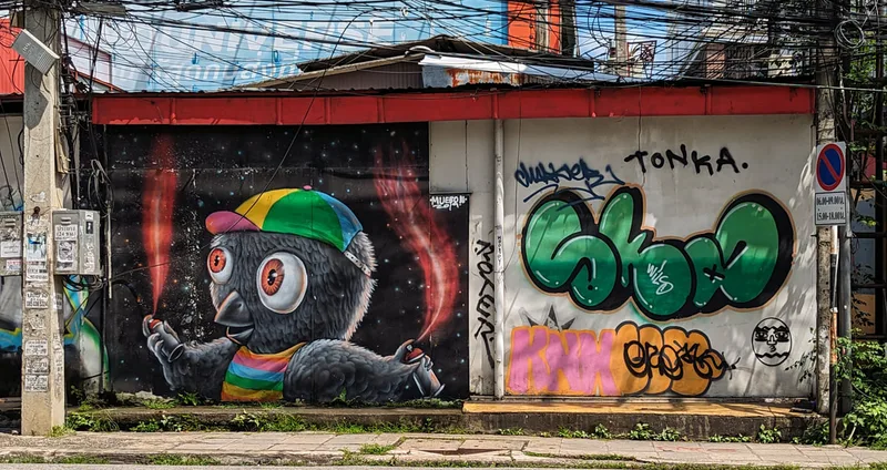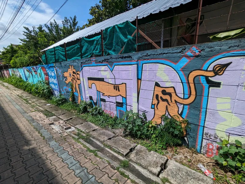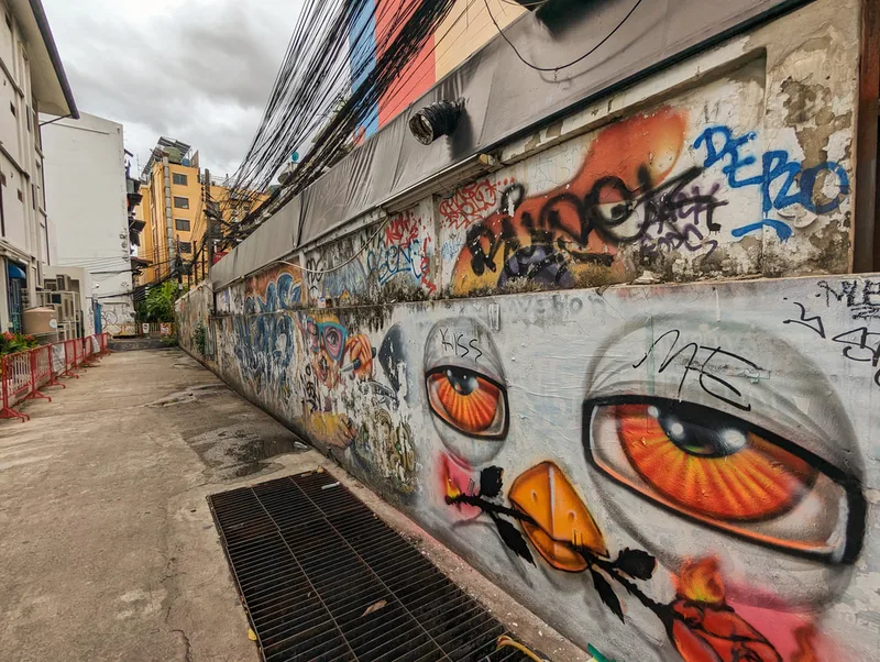 Whenever I travel, I like to experience all aspects of life in the place I am visiting. By visiting overlooked areas other tourists avoid, I am able to see more of a country and the people who live there. Thailand is a country of contrasts; around every corner there is another temple or religious monument, but there are also clues to other aspects of Thai life. Graffiti, rather like paintings in a gallery, document particular points in the history of a nation; although it is often unnoticed and unappreciated, its artistic merit is equally important.