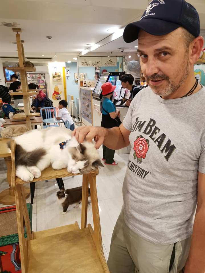 A short walk from the National Park, towards Myeongdong we visited another cat cafe, popular here in Korea. Darrell and I have always had a love of cats, so it was appropriate that we should spend another hour or so surrounded by more feline friends. The cats here were far more active than they were at the 'Hello Cat Cafe,' we had visited earlier in the week. It was clear this space was designed to cater for the needs of cats, and not those who were coming to visit. There were plenty of toys and apparatus to mimic a more natural environment and the resident cats seemed happy and relaxed.