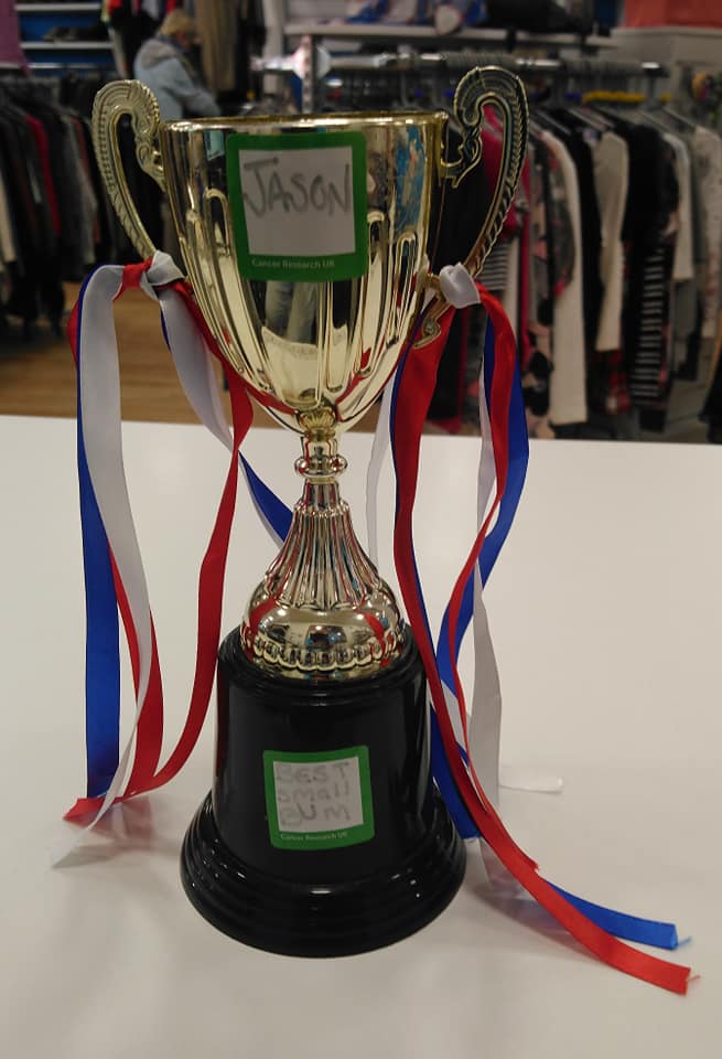 Darrell gets on fantastically well with everyone at this charity and it has been good to see him relaxed and content before he returns home. Today, he was awarded the 'Best Small Bum' award by the ladies at work; a further nod of approval from such a fun loving group of people, all striving for the same goals, working tirelessly for Cancer Research!
