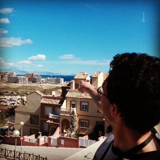 Jamie pointing out where Benidorm is!