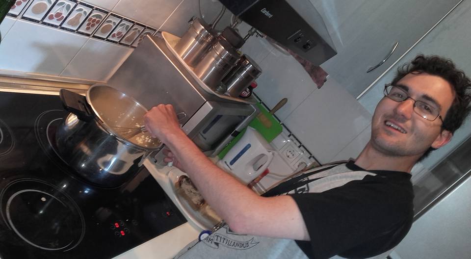 He´s enjoying cooking, and actually is doing it very well. It is something everyone should know how to do!