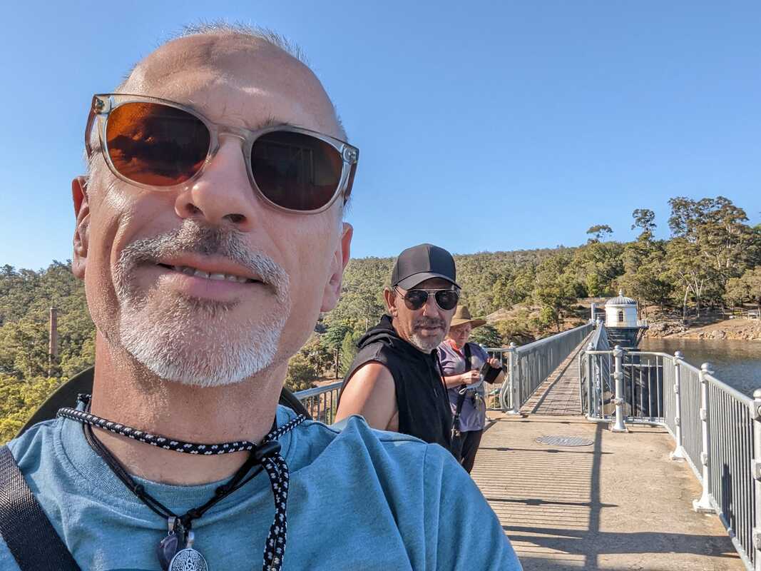 The next stop, before we made our way home, was Mundaring Weir. This striking monument to Australia's water shortage was pretty impressive, although certainly not as big as I imagined. As we drove up to the dam, I was struck by the huge pipes littering the forested landscape. Darrell told me they were used, to transport water to Kalgoorlie, 700 km away. This mid-Australian gold mining town is where Darrell was born and has little to no water of its own, so Perth pipes this basic human requirement to the community, at great expense.