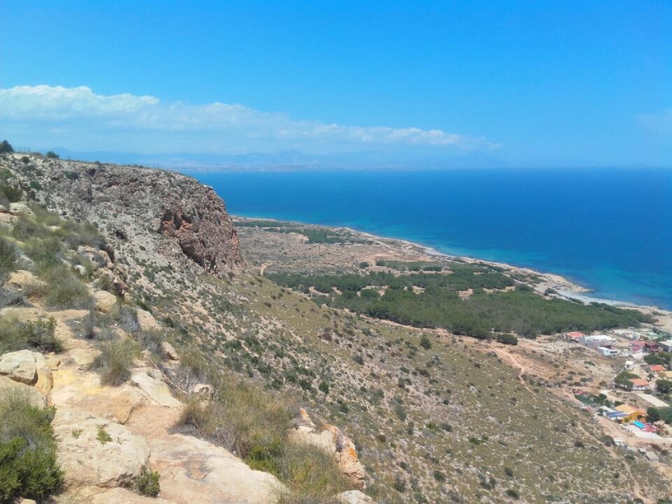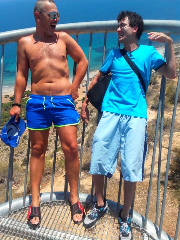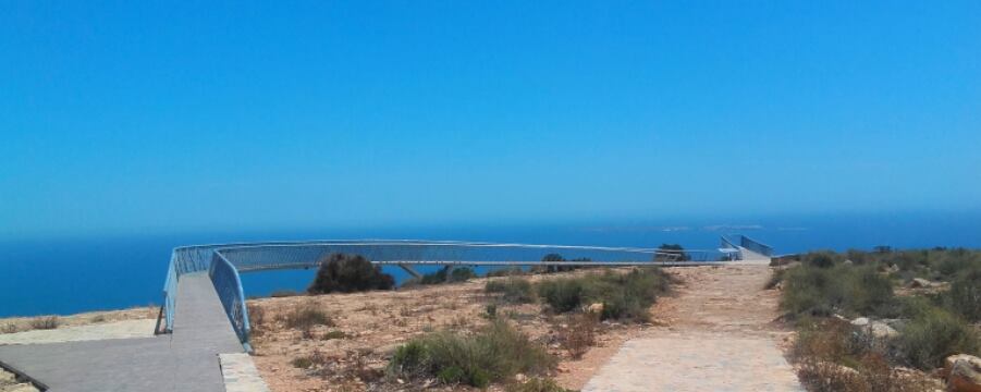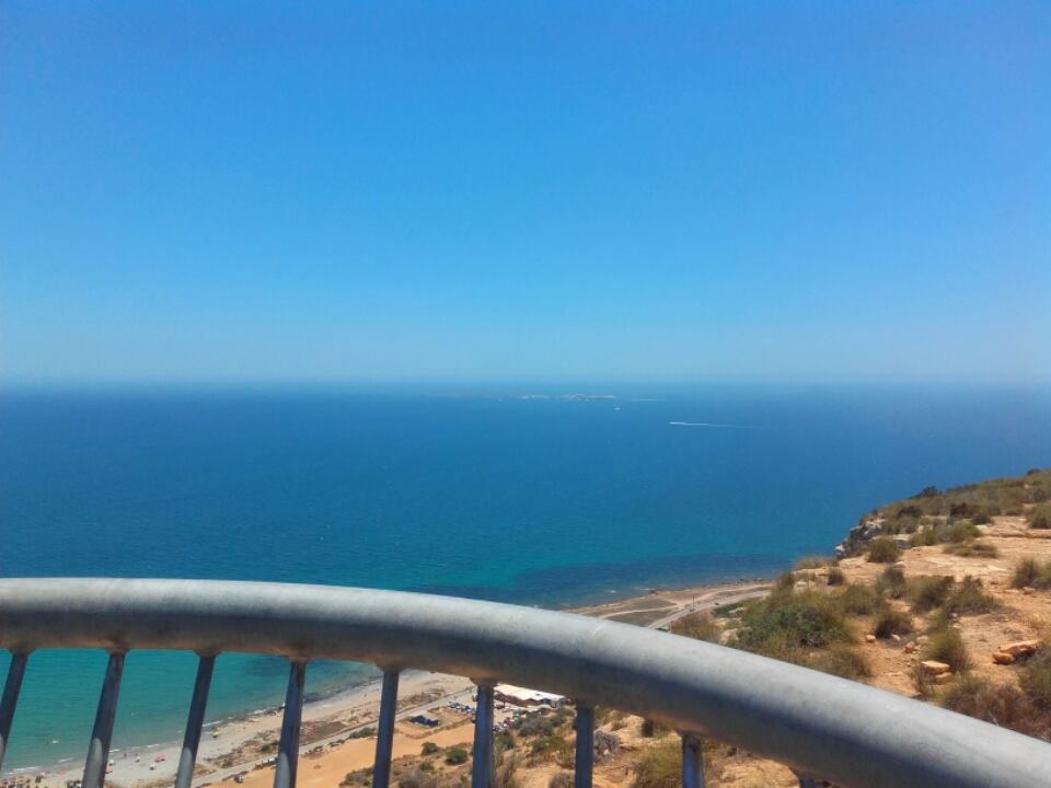 What another gorgeous day today. Hot clear blue sky and all of us with a day off. So we decided to at least get out of the house. Jamie and myself were getting cabin fever, so we had a drive in the car to The Sky Bridge in Santa Pola. I still hadn't been there, although it is quite famous around these parts. The Sky Bridge, is basically a structure that is built out over a large cliff, offering wonderful views of the region. Personally I am scared of heights and walking over a sheer drop, is not my idea of fun, but I did manage to walk the distance, The views were breathtaking, you could see for miles around.
