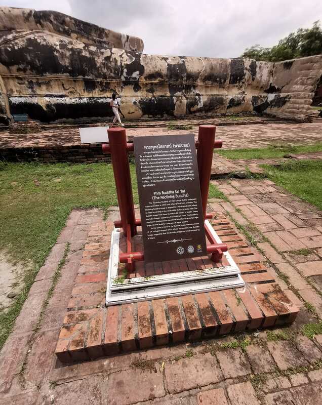 This 400-year-old reclining Buddha is the fourth largest in Thailand, 43 meters long and 15 meters high. Built of cement and brick, it is probably one of the best preserved monuments we saw. The reason why it is in such good condition, is because it has been protected from the elements at various different points in its history.